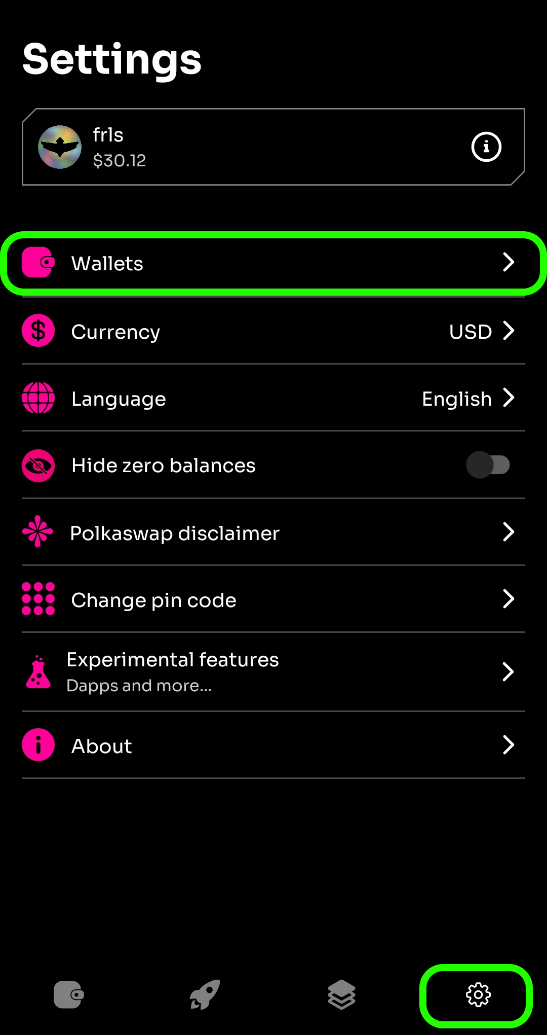 Click on the Wallet tab and then on the asset you'd like to change nodes for (i.e. DOT):